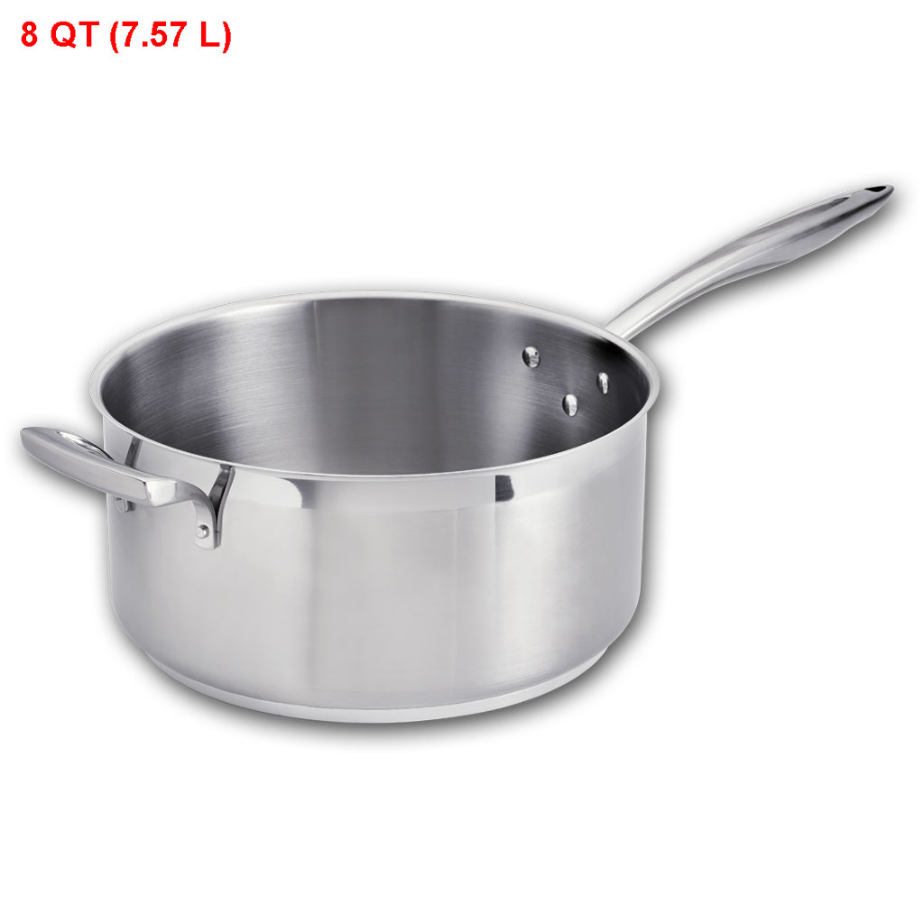 8 QT (7.57 L) Low Sauce Pan, with Helper Handle, Stainless Steel