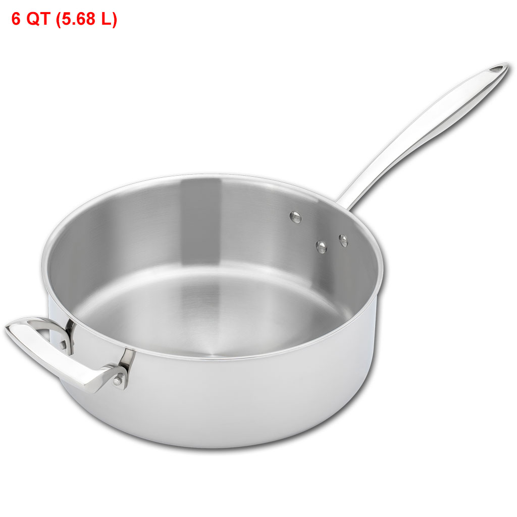 6 QT (5.68 L) Tri-Ply Sauce Pan, with Helper Handle, Stainless Steel