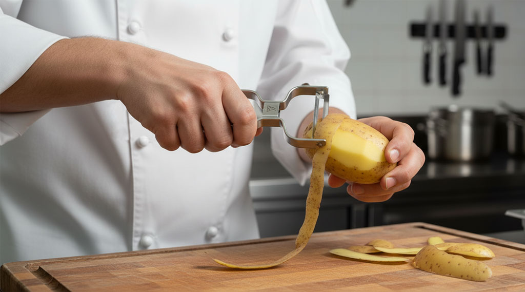 Our stainless steel peeler is engineered for effortless peeling — whether it’s potatoes, apples, carrots, or cucumbers. It is also perfect for fine slicing and for shredding white or red cabbage into fine strips.