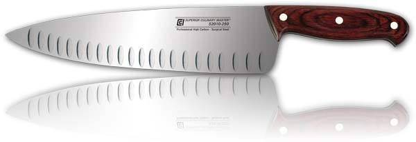 Also known as a French or Cook's knife, the blade is curved to allow a rocking motion during usage to get a more precise cut. This knife is the all purpose, "worker knife" in the kitchen, and is used for a variety of slicing, chopping, dicing and mincing tasks.