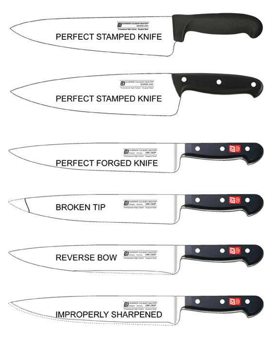 The following is an illustration showing perfect shaped knives and typical problems with knives.